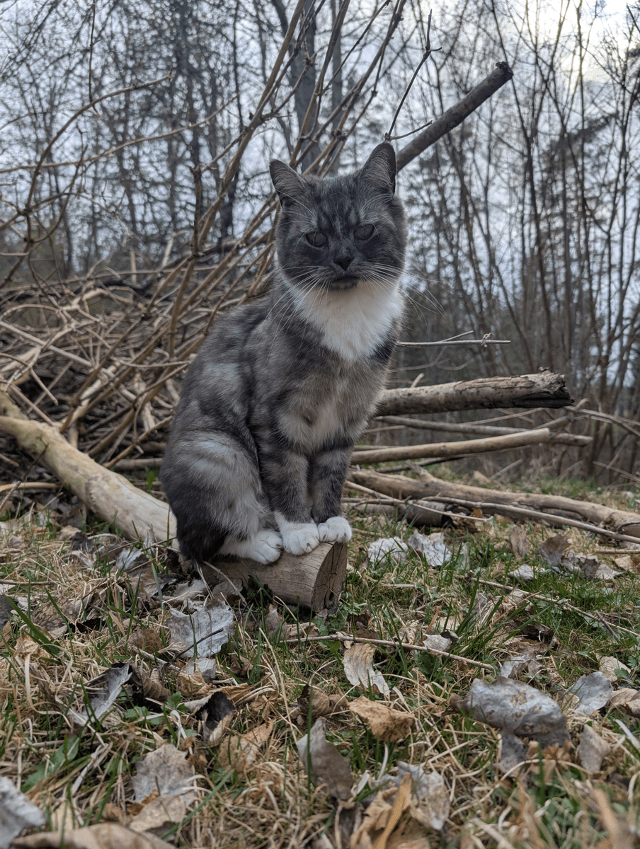 A very close fear for me is something happening to my cats. That would be devastating. One reason I moved into the woods was to share a little piece of paradise with them where they also have the freedom to move around, hunt, and climb trees safely, without any roads and cars around. It’s generally very safe here for them, but of course there are other animals that could pose a risk like owls and other birds of prey.🐾